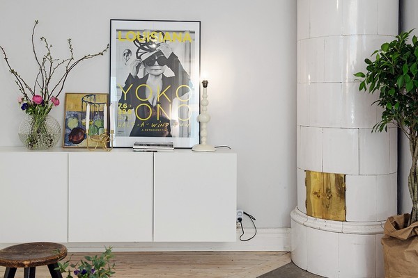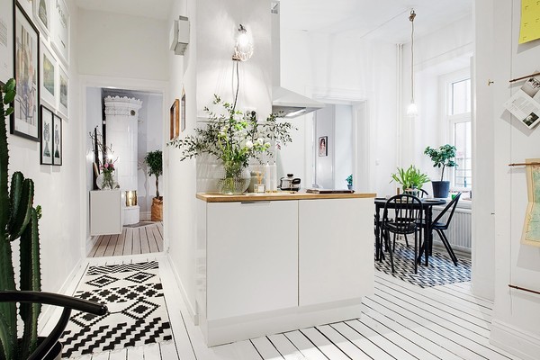 Những bức tường trắng đã tạo nên nền cho không gian sống của căn hộ. Với thiết kế căn hộ cho phép ánh sáng tự nhiên tràn vào căn phòng, các bức tường trắng phản sáng giúp không gian sống luôn tươi sáng. Trần nhà màu trắng tự nhiên mang đến cảm giác trần nhà cao hơn cũng là lý do giúp không gian căn hộ thêm thoáng mát hơn.