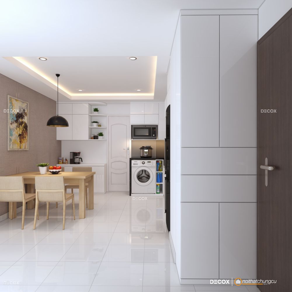 Căn hộ 72 m2 được thiết kế với gam màu trắng dịu nhẹ mang lại một không ..